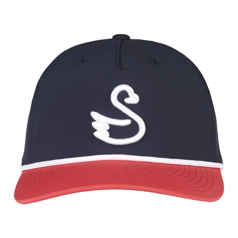 The Swannies Donovan Men’s Golf Hat brings a playful twist to classic golf headwear. Featuring a five-panel structure and a slightly curved bill, it offers a comfortable fit and a touch of retro flair. The contrasting rope detail and puff swan embroidery add unique character, making it a standout accessory on and off the course. With its adjustable snapback design, this hat ensures a snug fit for most head sizes, combining style and functionality effortlessly.