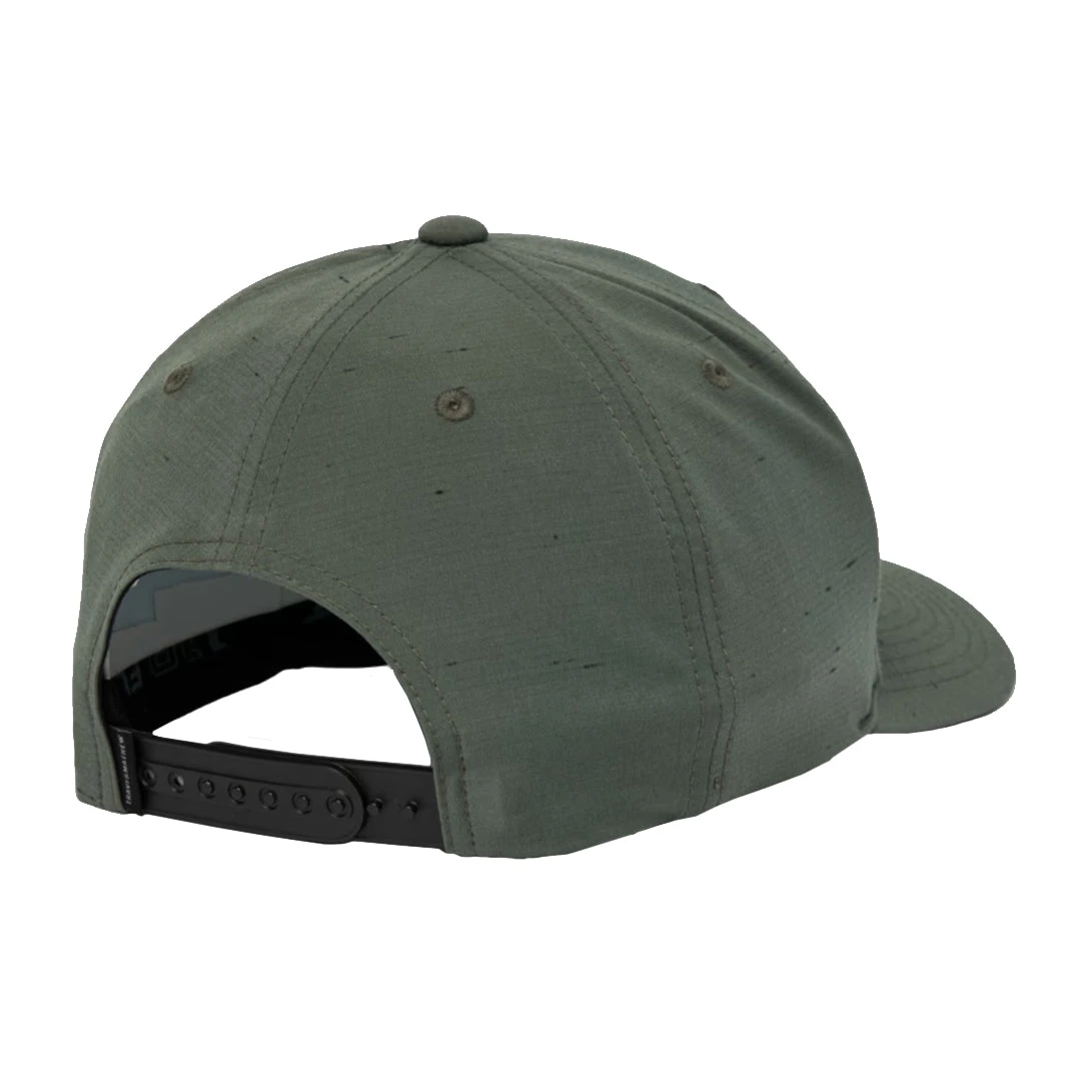 The TravisMathew Private Cabin Men’s Golf Hat combines premium materials with a sleek design, making it a versatile accessory for both on and off the golf course. This fabric snapback hat features the signature embroidered TravisMathew icon, uniquely updated with leather backing on a nep fabrication, offering a refined yet casual look. The Flexfit 110 technology ensures a comfortable fit for most head sizes, incorporating a stretch sweatband and adjustable back closure for added convenience.